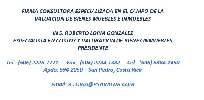 VISION: Así como se empezó y se continua, el objetivo será mantenerse asesorando a instituciones financieras, públicas, privadas, a particulares y actualizándose en la parte académica para transmitir los conocimientos a nuevas generaciones tanto en el país como fuera de él.La empresa está inscrita en el Colegio Federado de Ingenieros y de Arquitectos de Costa Rica -CS-01012.